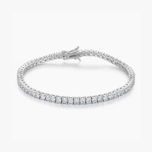 This 3mm Moissanite S925 tennis bracelet features a refined and minimalist design, with each Moissanite stone perfectly aligned to produce a fresh, radiant glow. Made from 925 silver and plated with white gold, it combines elegance and luxury, suitable for any occasion.