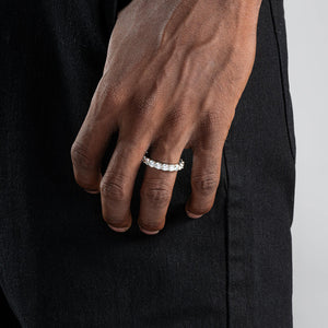 The Moissanite S925 4mm Tennis Ring features radiant moissanite stones, meticulously set in sterling silver to create a timeless and elegant piece. Whether worn as a statement on its own or stacked with other rings, it brings a sophisticated sparkle to any look.