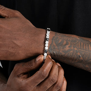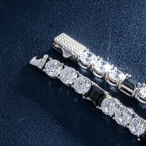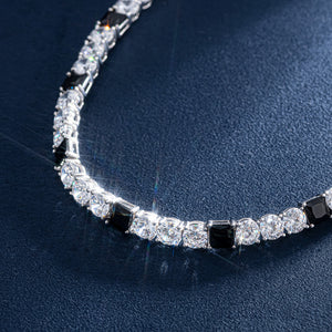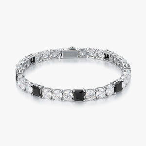 This black square moissanite tennis bracelet combines unique square-shaped stones with high-quality 925 silver, offering a stunning shine and modern aesthetic. Each black moissanite stone is meticulously cut to showcase captivating brilliance, blending luxury with fashion.