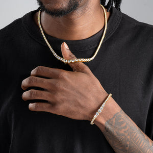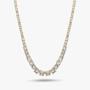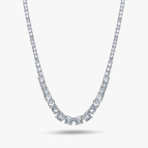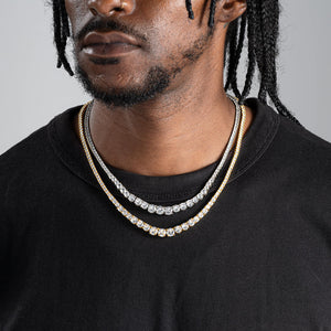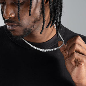 This Graduated Tennis Chain exudes elegance and taste with its unique graduated design. Each high-quality cubic zirconia is evenly arranged, emitting captivating sparkle. The chain width ranges from 3mm to 7mm, with length options available, suitable for various occasions, perfectly enhancing your fashion taste.