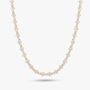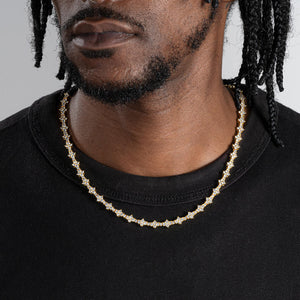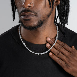 This Honeycomb Tennis Chain highlights elegance and taste with its unique honeycomb design. Each high-quality cubic zirconia is evenly set, radiating captivating sparkle. The chain width is 6.5mm, with customizable length options, making it perfect for any occasion and elevating your fashion sense.