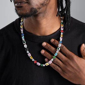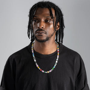 This S925 Multi Gemstone Motif Chain showcases luxury and taste with its exquisite design and brilliant multicolored gemstones. Each gemstone is evenly arranged, emitting captivating sparkle. The 925 silver material and white gold plating ensure durability and lasting shine. Suitable for various occasions, it perfectly enhances your fashion taste.